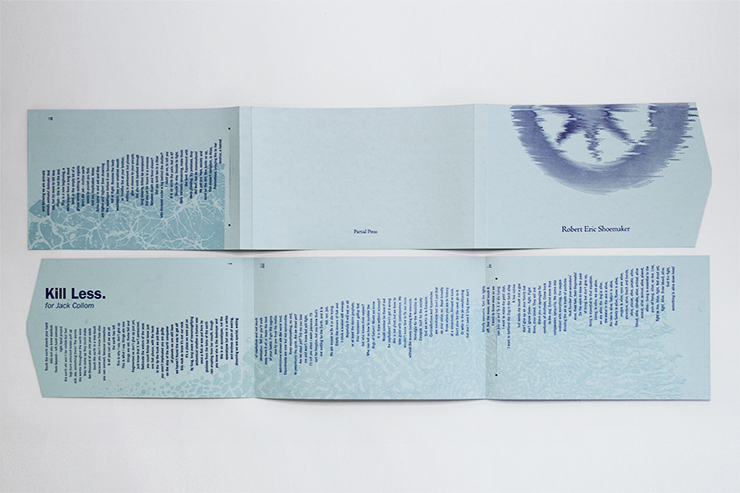 Shoemaker reading from Ca’ Venezia’s opening poem-play, backed by an original score by Lee Miles with visuals excerpted from the original artists’ book, and another version of “Kill Less.”