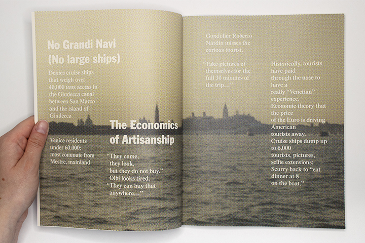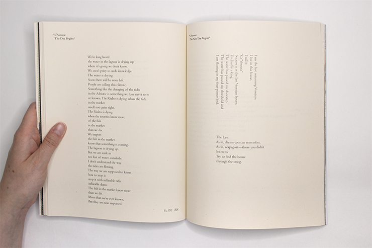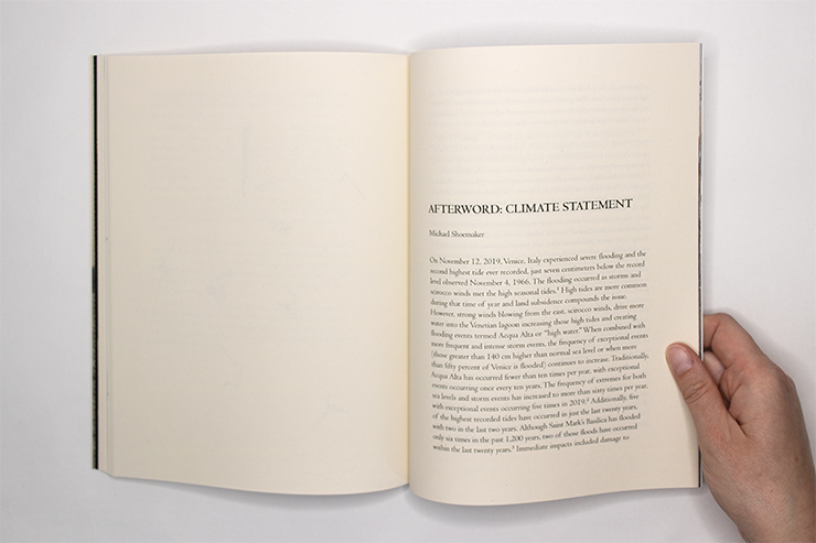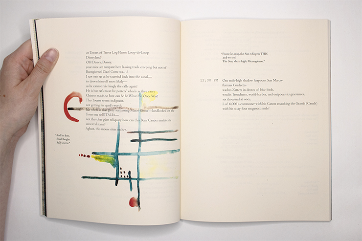 Ca’ Venezia is an artists’ book installment in a much larger interdisciplinary project on Venice, artistry, tourism, and climate change, all based on a research trip funded by the Pulitzer Center on Crisis Reporting.